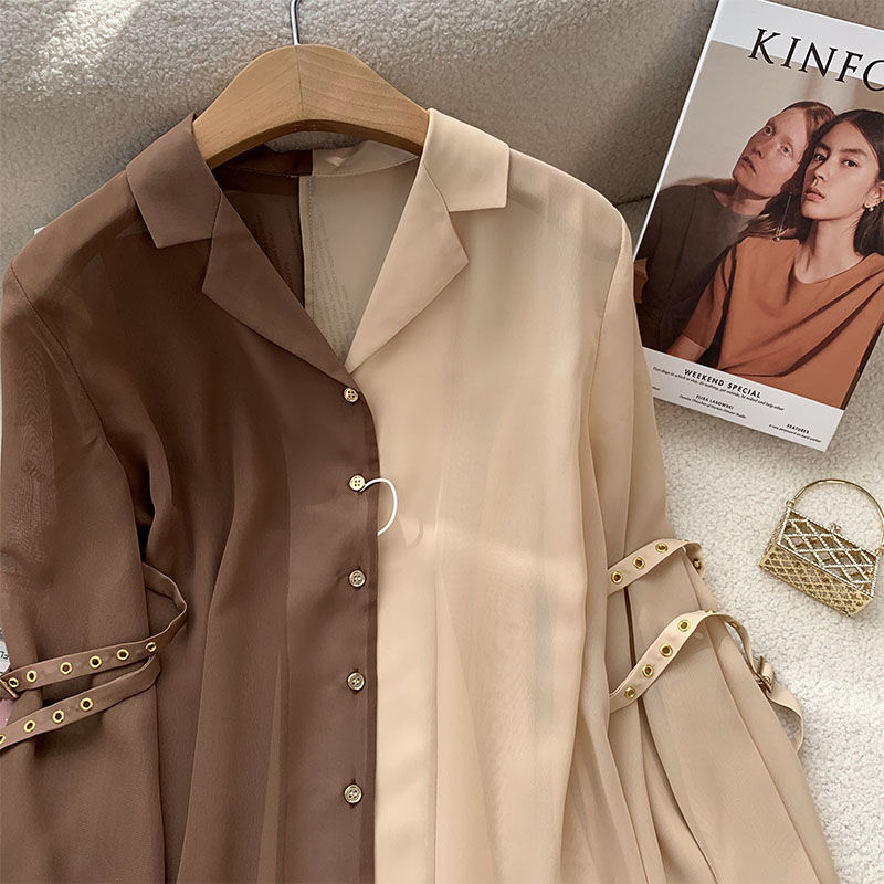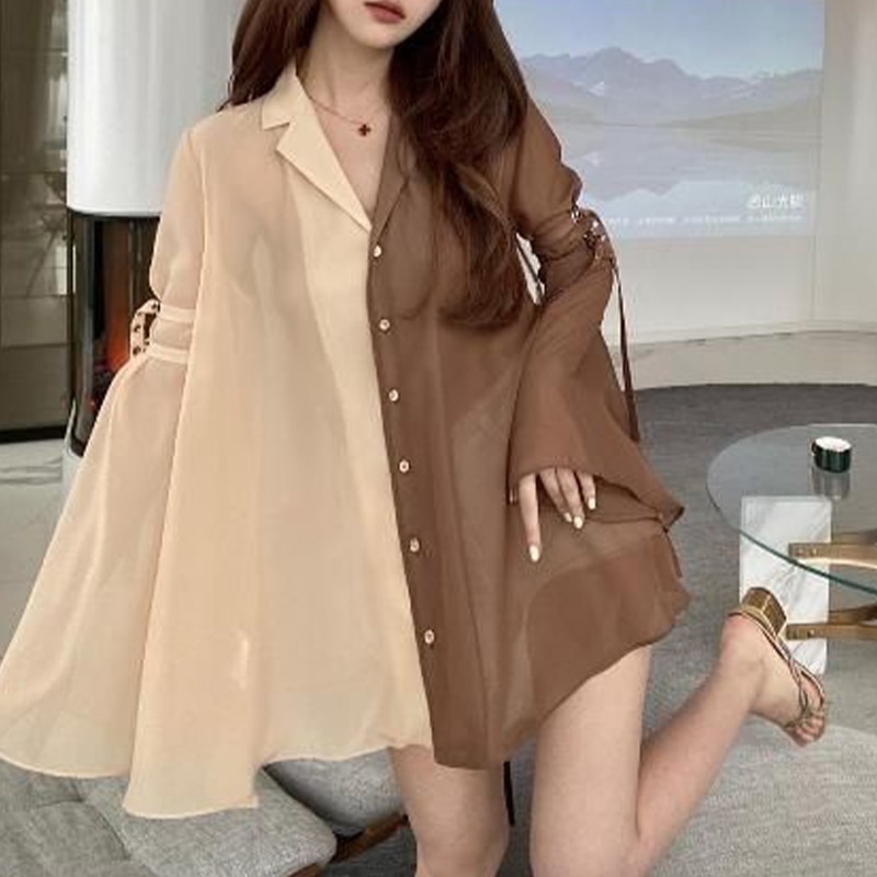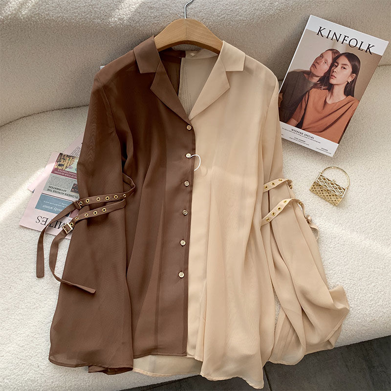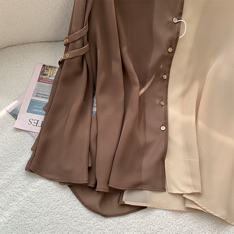 Camisas Casuais Finas de Chiffon Moda Grande Elegante Peito Único